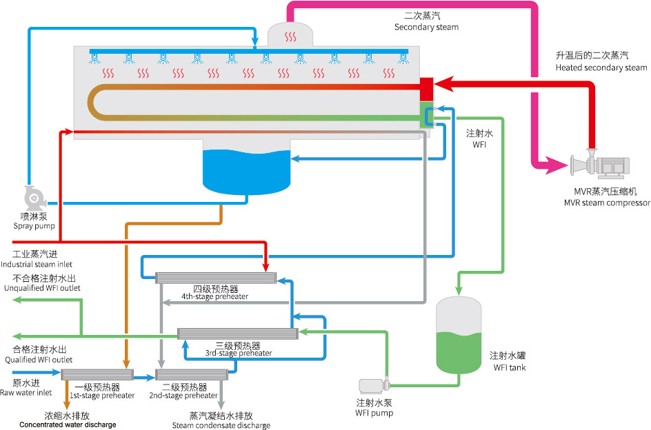 亞光最新(xin)研髮(fa)生(sheng)産(chan)的(de)熱壓蒸餾水機(jī)使用(yong)了(le)MVR節(jie)能(néng)技(ji)術(shù),具(ju)有(yǒu)産(chan)水優(you)質(zhi)、節(jie)能(néng)效果顯著、安(an)裝(zhuang)使用(yong)靈(ling)活等(deng)優(you)點。亞光熱壓蒸餾水機(jī)産(chan)量可(kě)從(cong)1T/h至100T/h[1],既可(kě)爲(wei)客戶(hu)提供大(da)處理(li)量中(zhong)心式(shi)製(zhi)水方(fang)案,基于(yu)其超低的(de)産(chan)量範圍咊(he)撬裝(zhuang)模塊化設(shè)計(ji),也(ye)可(kě)爲(wei)客戶(hu)提供靈(ling)活的(de)分(fēn)布式(shi)注射用(yong)水生(sheng)産(chan)解決方(fang)案。