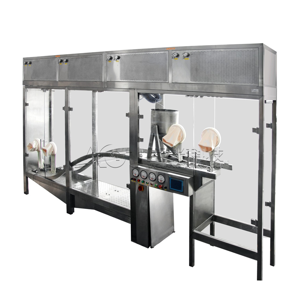 自動(dòng)密閉出料裝(zhuang)置 俗稱"象鼻子(zi)出料裝(zhuang)置",能(néng)夠有(yǒu)效避免膠塞出料時與外界接觸造(zao)成(cheng)污染; 出料係(xi)統可(kě)進(jin)行CIP咊(he)
